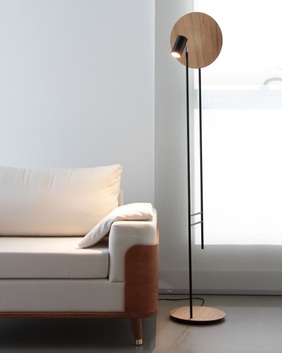 Coluna Dot – Accord. Kit de spot articulado e rebatedor de madeira que possibilita a iluminação direcionada ou rebatida.