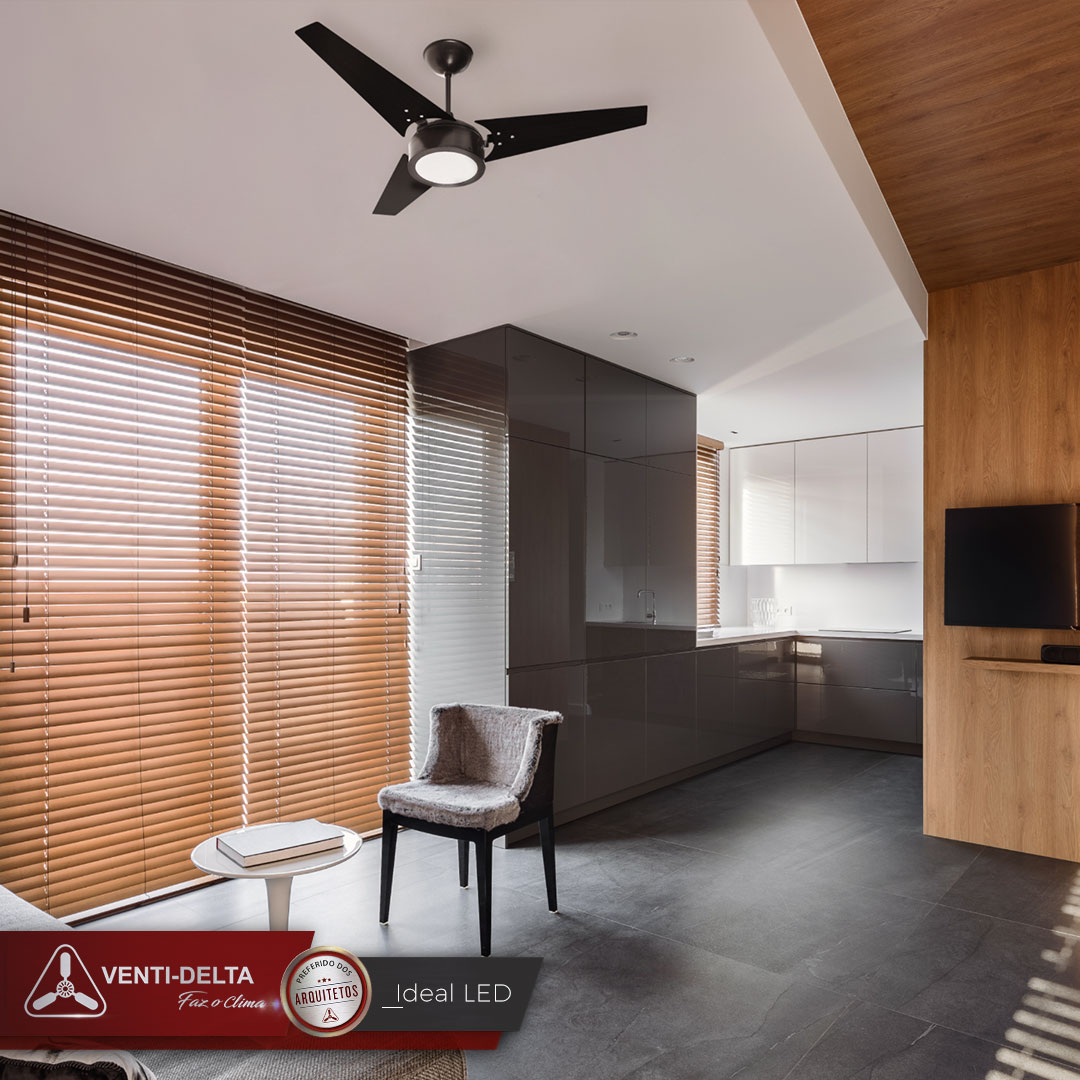 Ventilador de teto Venti-Delta com luminária em LED, 3 pás, design diferenciado, criado para trazer mais conforto e beleza aos ambientes. Fabricado 100% no Brasil. Desenvolvido com design internacional e 11 testes de qualidade. Proporciona ventilação e iluminação perfeitas, transforma qualquer ambiente em agradável e confortável.